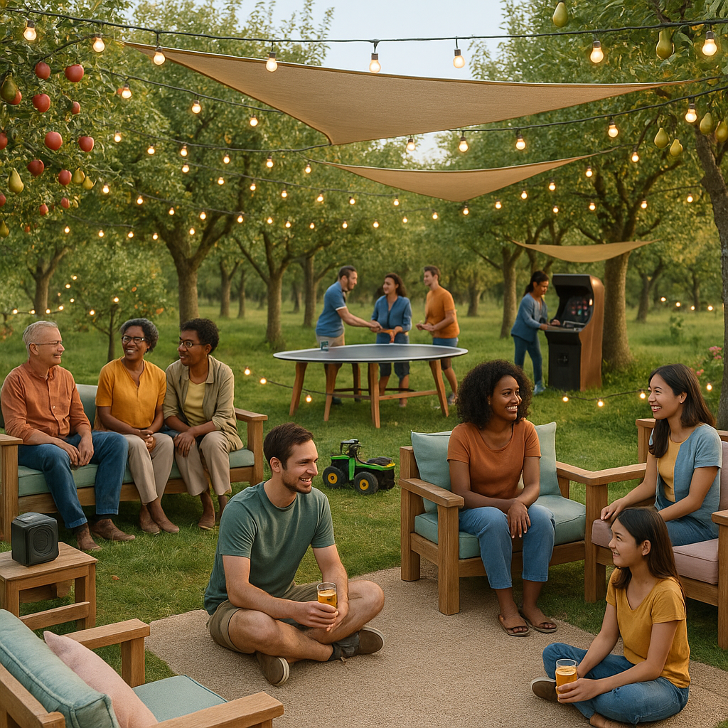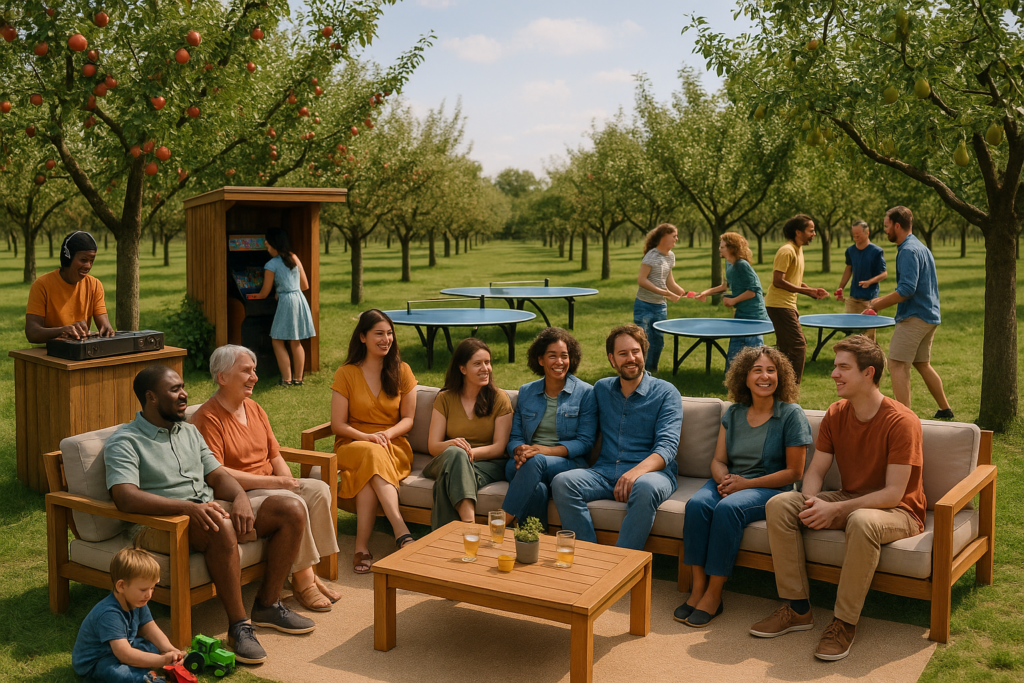 Bij Paradijsappels kun je gezellig met je vrienden wat drinken onder de fruitbomen.